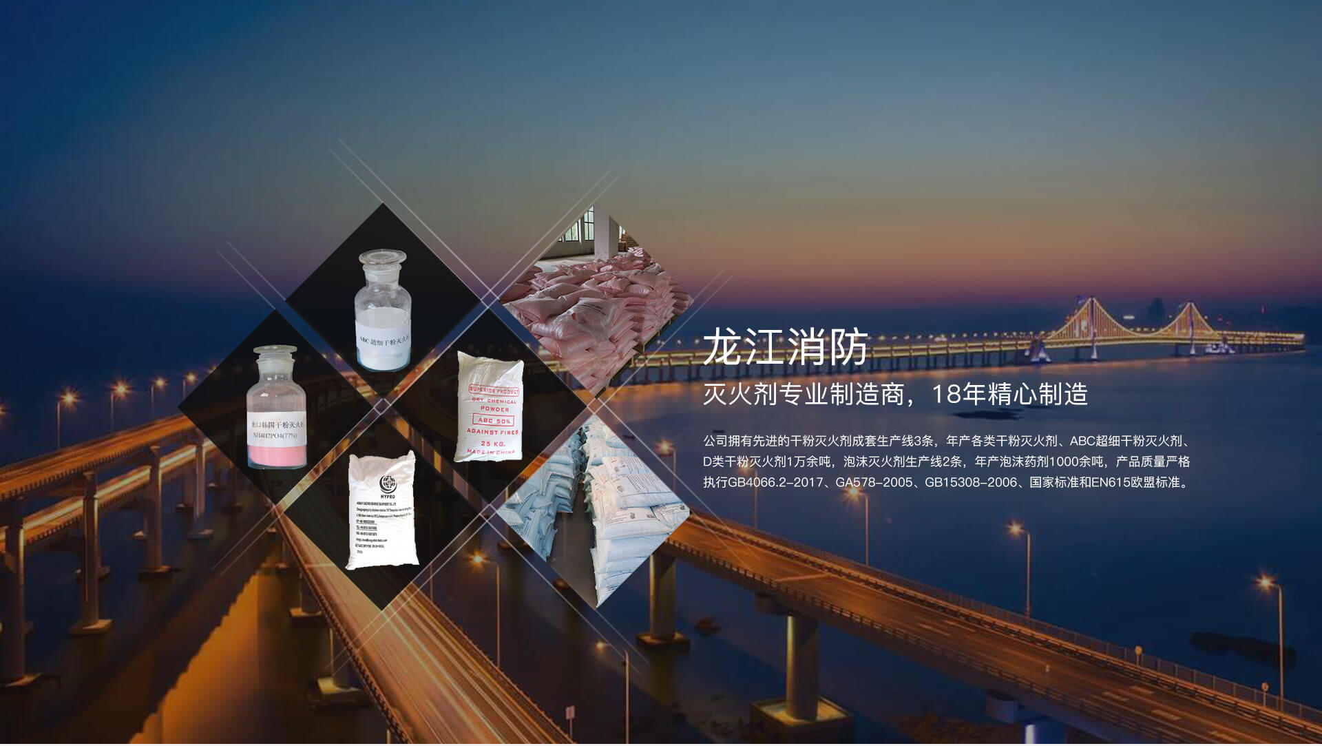 江山市龍江消防材料有限公司成立于2002年8月,是一家專業(yè)從事:干粉滅火劑、ABC超細干粉滅火劑、泡沫滅火劑、D類干粉滅火劑、D類滅火器、車載滅火器開發(fā)、生產(chǎn)、銷售的浙江省科技型企業(yè),公司現(xiàn)有員工80多人,固定資產(chǎn)2000萬元,占地面積10000㎡。